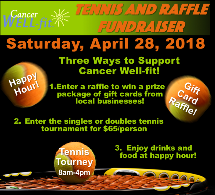 Avila Bay Athletic Club & Spa on April 28th, 2018! We'll have a tennis tournament, a happy hour with refreshing drinks and delicious food, and a raffle for a package of gift cards from local businesses! All proceeds go to support Cancer Well-fit and to provide free services to local cancer survivors.